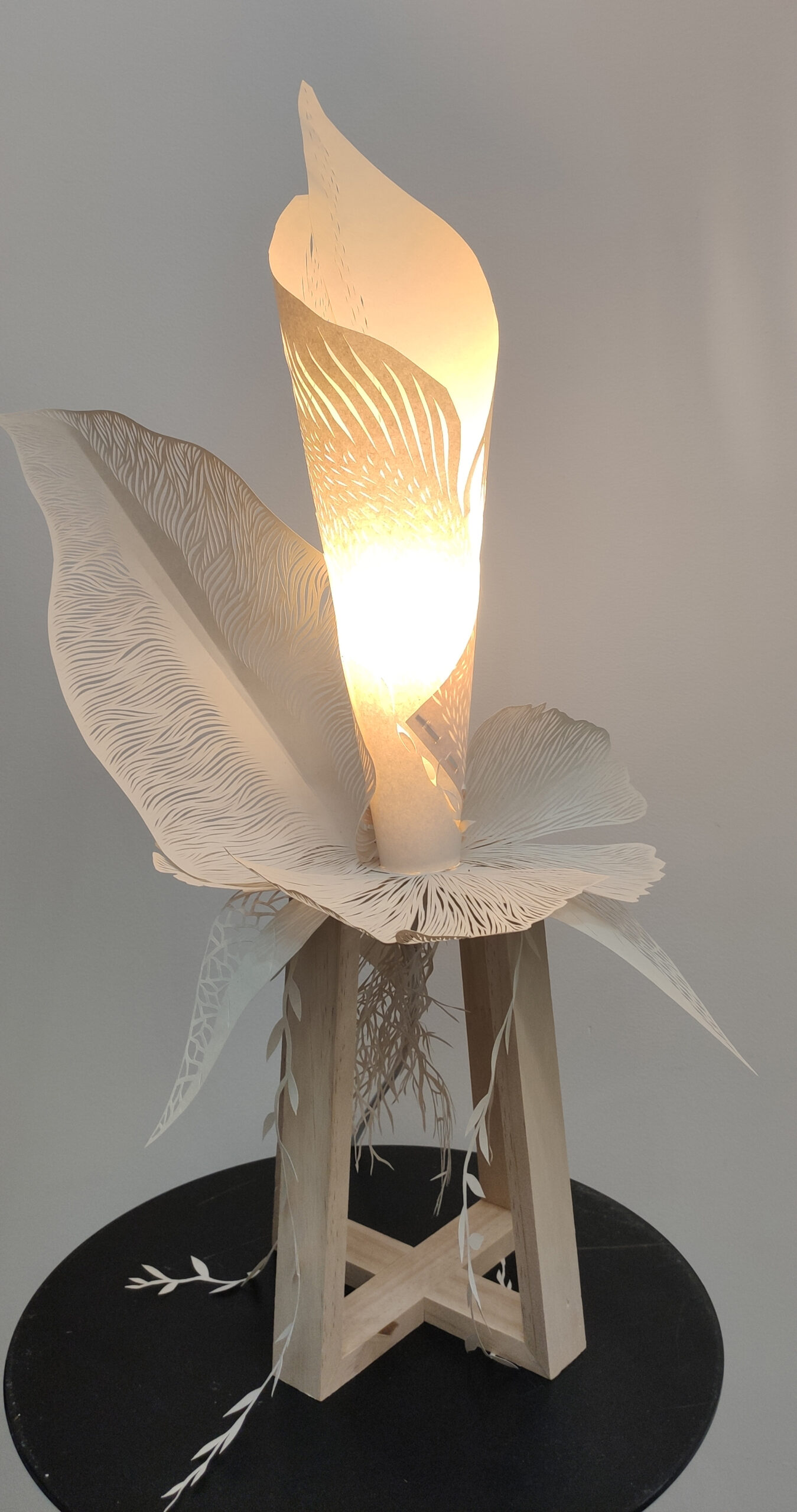 Dans la continuité de ma recherche sur la matière papier, cette série explore le végétal et les algues de ce second poumon vert en ajoutant les nuances de l’aquarelle à la sculpture et travail du volume. Chaque pièce est découpée à la main au scalpel, mêlant la finesse du kirigami à une écriture formelle inspirée des papiers découpés de Matisse.