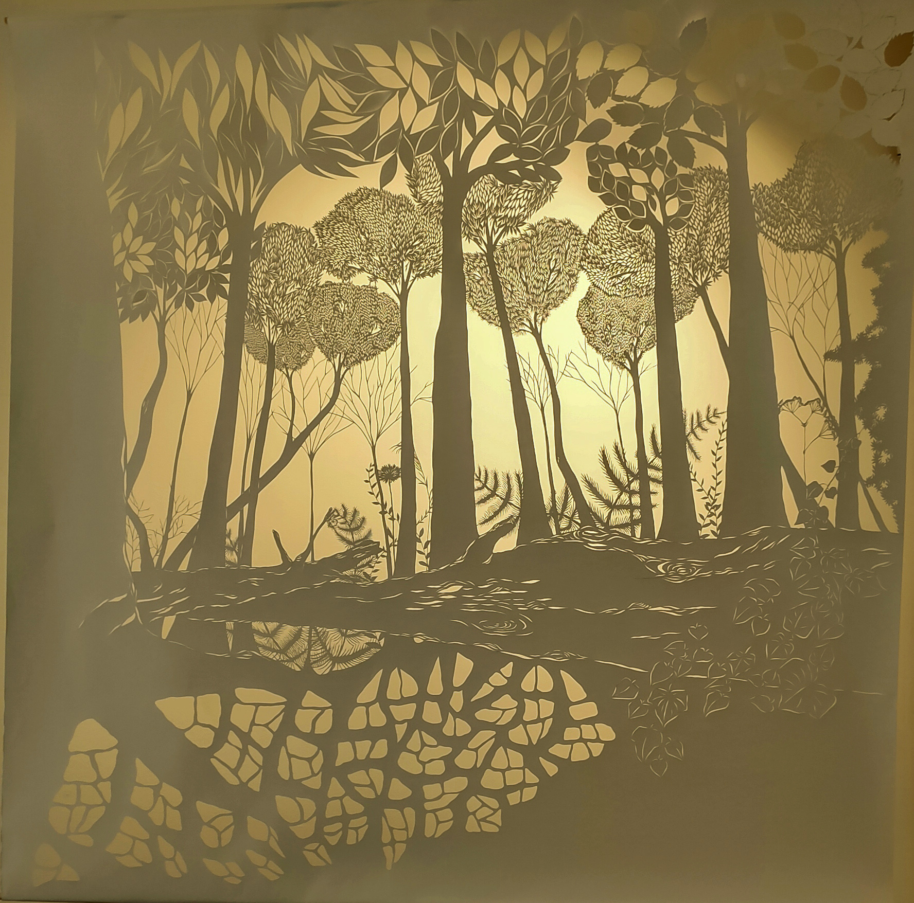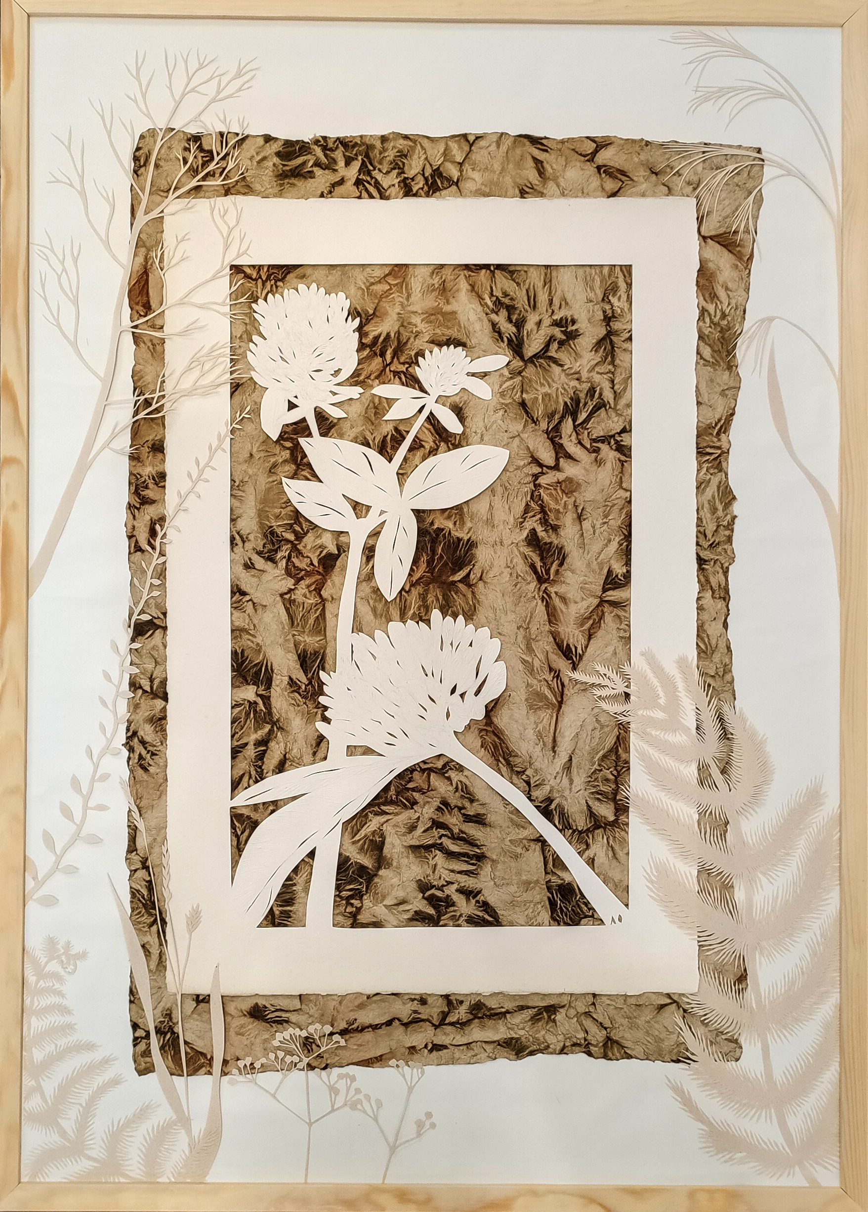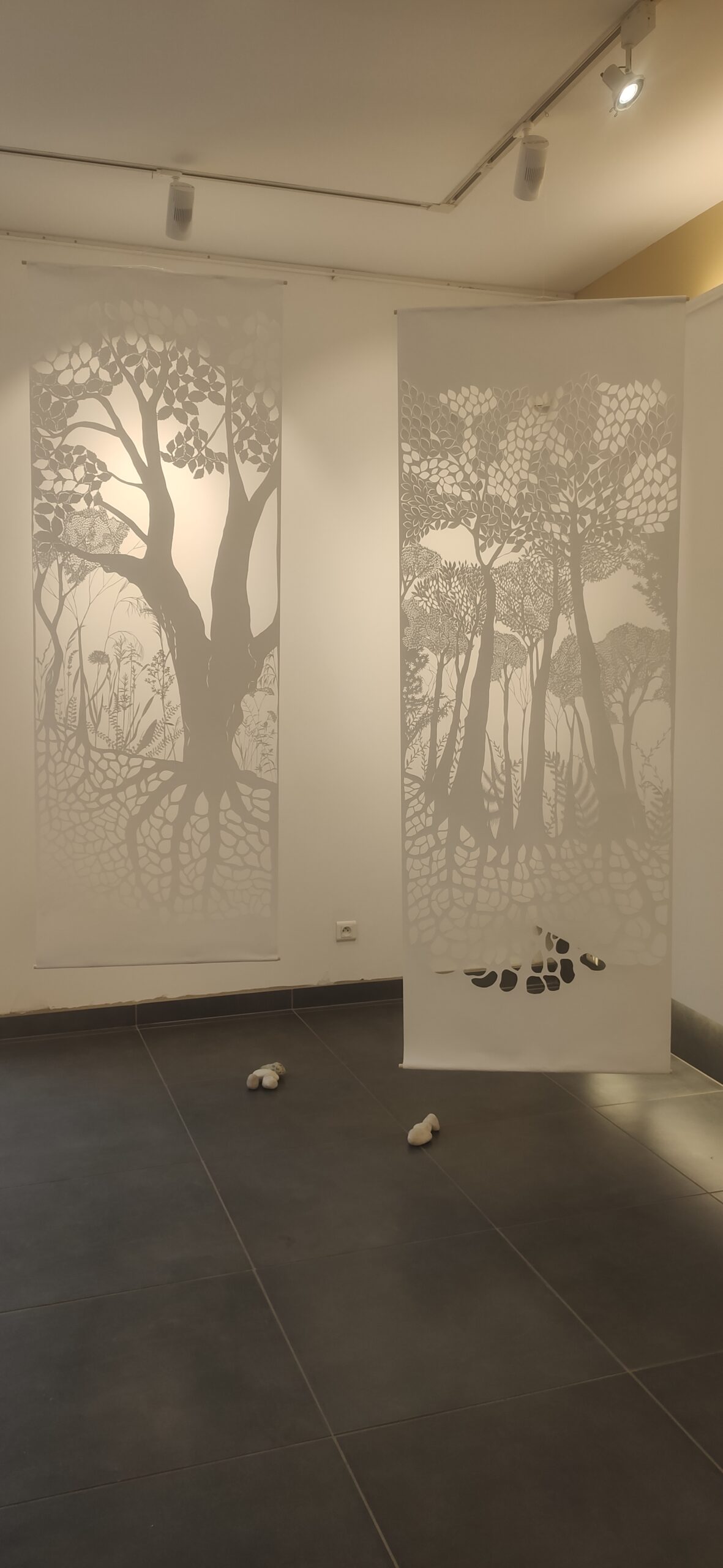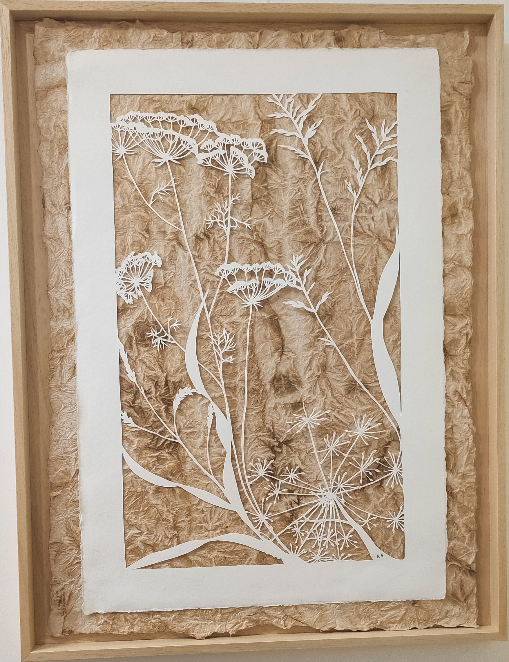Anne Oléron travaille le papier découpé à la main au scalpel.